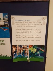 We had to pay a local visitors tax of €45 and we were given passes for the park. You are meant to have a passport photograph ready for your pass. If you don’t bring one they charge you to do one at €4 per person. The Canvas rep photocopied our passports instead and stuck those on for us so that saved us €24. The passes must be kept with you at all times and you will need them to get back into Duinrell if you go out for the day.