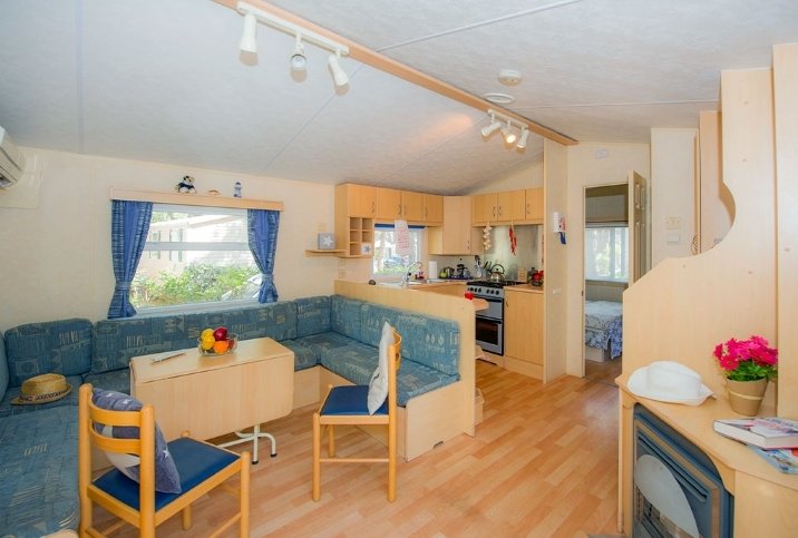 You get a small kitchen which we found to be well equipped, minus a toaster and microwave which would have been helpful but not necessary. The bathroom, although small was adequate. The bedrooms were one double, a twin and bunk bed room. There was also the option to pull out the sofa bed too so the caravan could easily sleep 8.